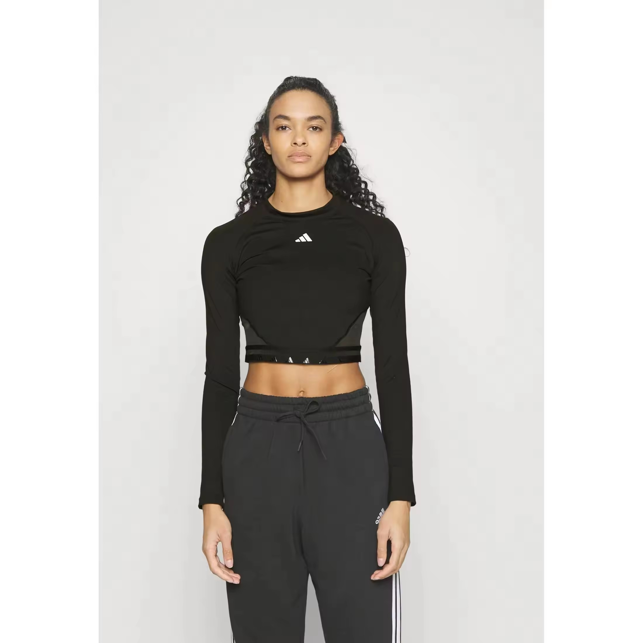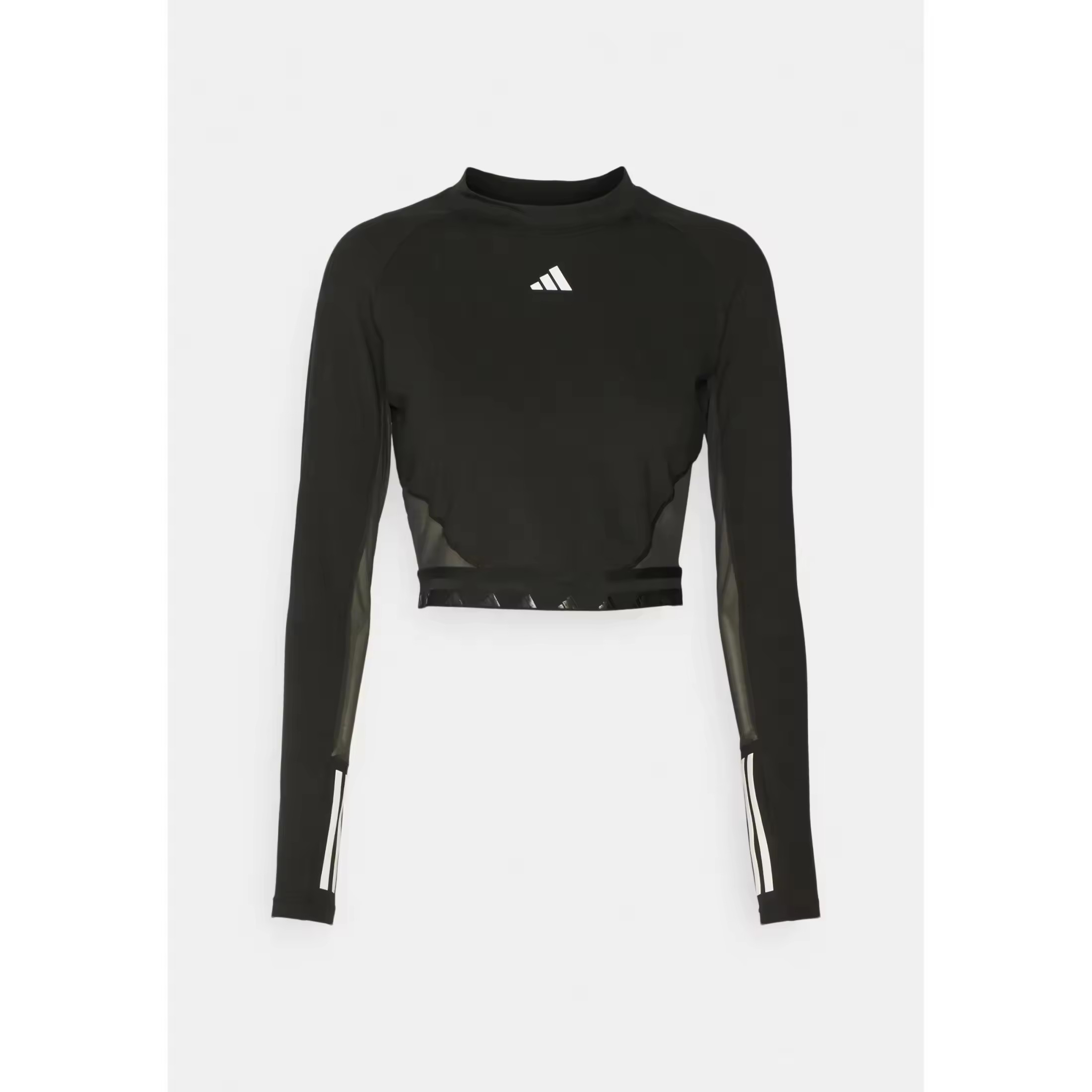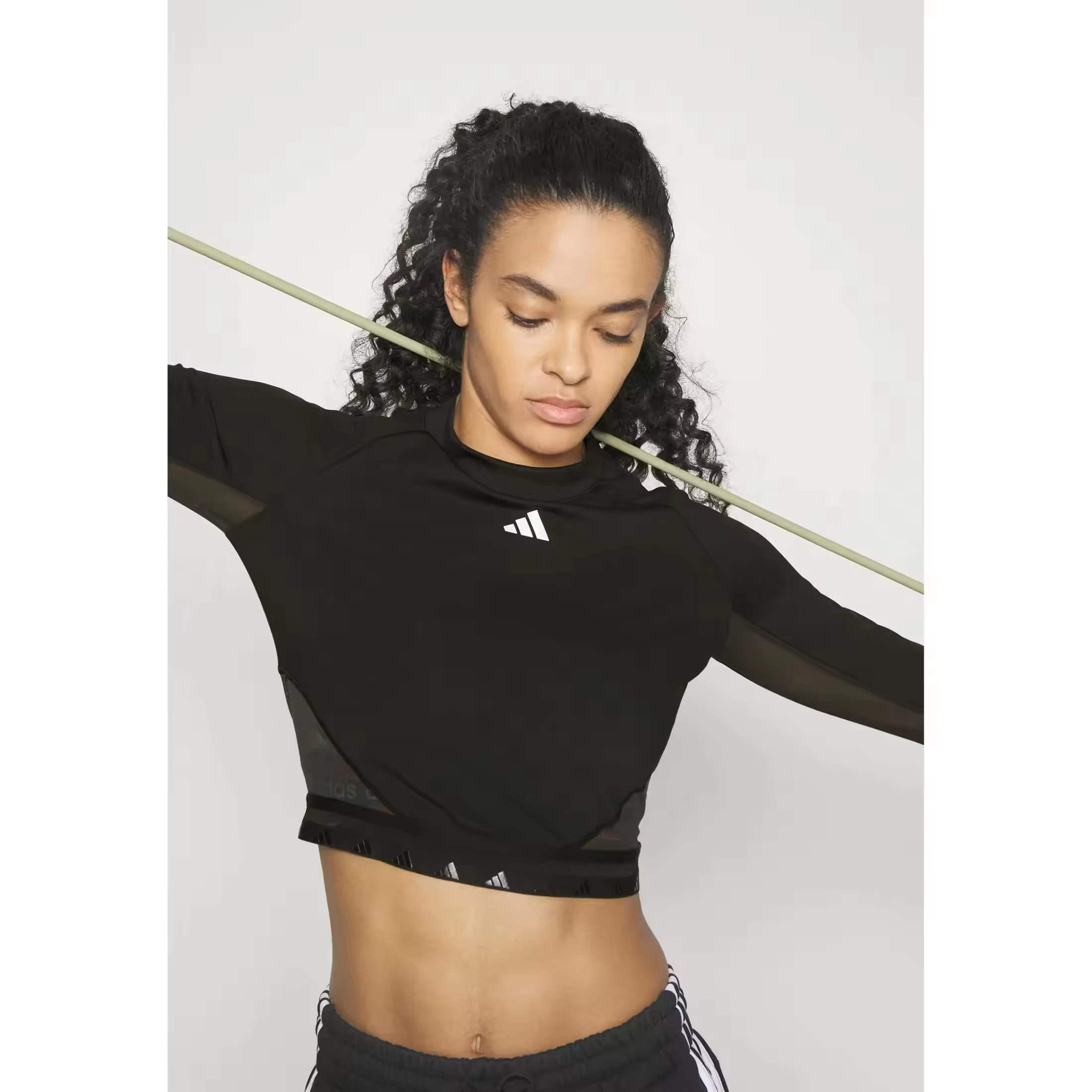 El estilo deportivo que buscas. El toque sofisticado que te encanta. Ambos se fusionan en esta camiseta corta de adidas. Combina un tejido transpirable AEROREADY y paneles de malla que favorecen la ventilación y mantienen la piel seca durante las rutinas más intensas. El diseño de manga larga con las icónicas 3 bandas le infunde un look genuino, mientras que el largo por encima de la cintura la hace perfecta para ponértela con tus mallas favoritas o con un pantalón corto.Este producto contiene al menos un 70% de materiales reciclados. Utilizando materiales reciclados, reducimos los residuos, nuestra dependencia de los recursos finitos y la huella que generan los productos que fabricamos.
