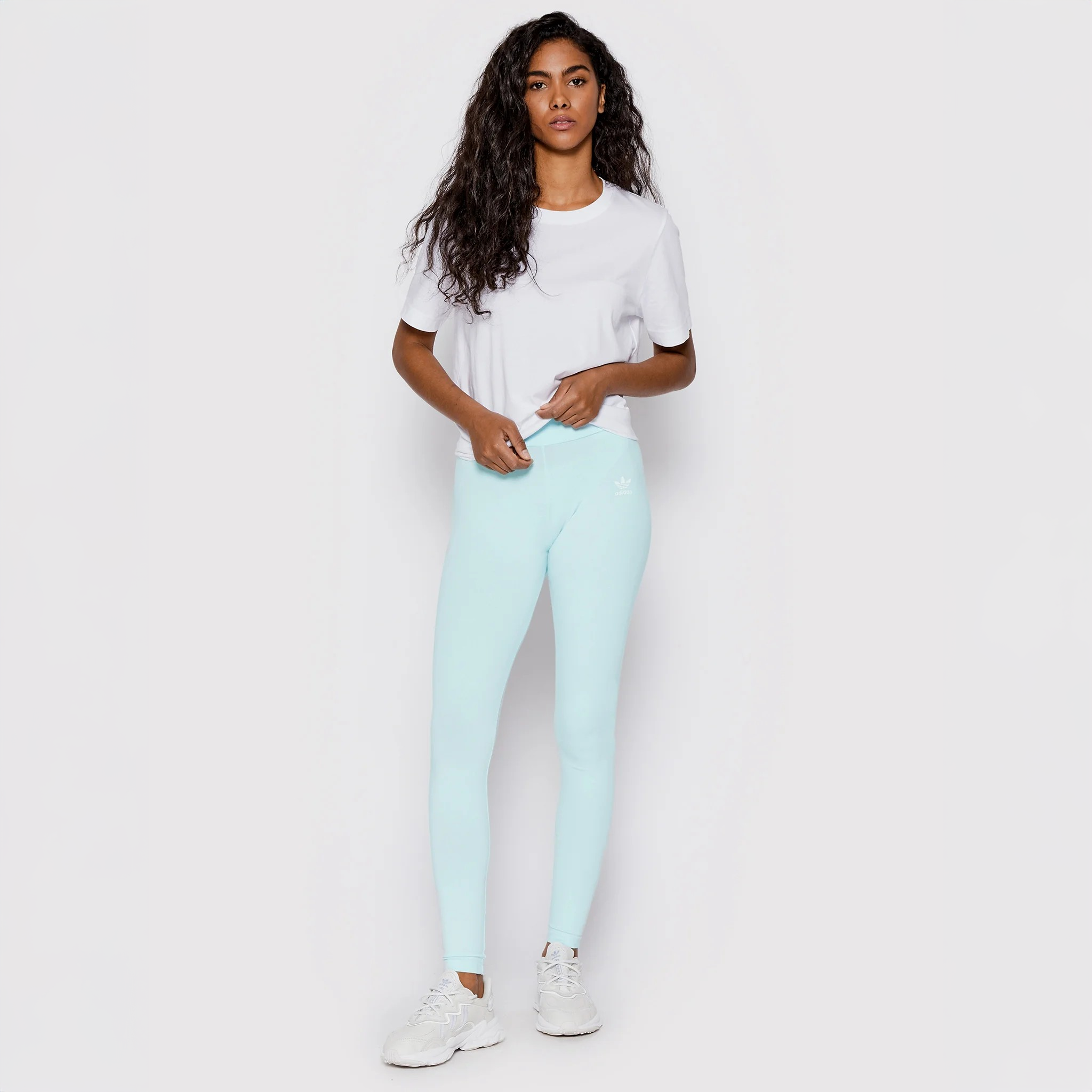 Leggings Adidas Essentials – Mallas Adidas para mujer – Leggins Adidas color azul claro para gimnasio – Pantalones para hacer deporte